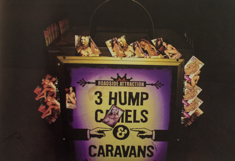 3.- El dinero compra casi todo. De eso se trata Las Vegas. La fuerza de esta imagen radica, además del color y la iluminación, en la yuxtaposición de los folletos de prostitutas con ese letrero que nos oferta camellos de tres jorobas y caravanas. La atracción circense y el comercio sexual.