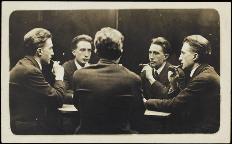 Cuando tecleé «retrato múltiple» en Google una de las primeras imágenes que apareció fue un retrato nada menos que de Marcel Duchamp, incluido en una retrospectiva sobre el más famoso apropiador del arte. Es exactamente el mismo truco usado en la foto de Sam Auster. Así que investigué un poco más al respecto y me encontré con la oscura historia del ascenso y caída del multigraph, un truco fotográfico por medio de espejos que fue muy usado por los estudios de retratos entre 1900 y 1920 para luego desvanecerse de la memoria colectiva. Un siglo después, el interés de los coleccionistas y el uso del Internet han rescatado del olvido esta moda. Gracias a ello podemos ver multigraphs de celebridades como Caruso y Gómez de la Serna.